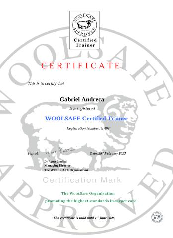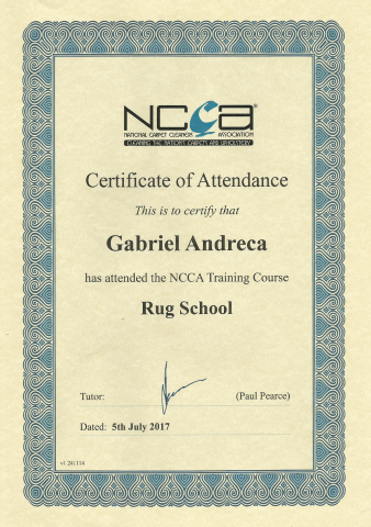 Having teamed up with the prestigious WoolSafe Academy, Gabriel is now a certified trainer and teaches courses on Carpet Dyeing and Colour Repair, Sisal Stain Removal and Colour Restoration, Rug Cleaning, Essential Rug Repairs and Advanced Rug Restoration around the world, with trainees spread across the UK, Europe, Australia and USA.