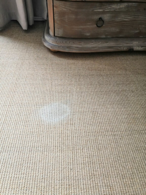Sisal, seagrass, and jute carpets are highly sensitive to moisture and agitation, often resulting in pale, discoloured patches.